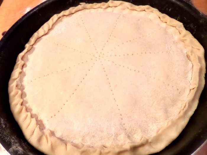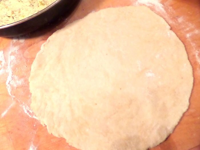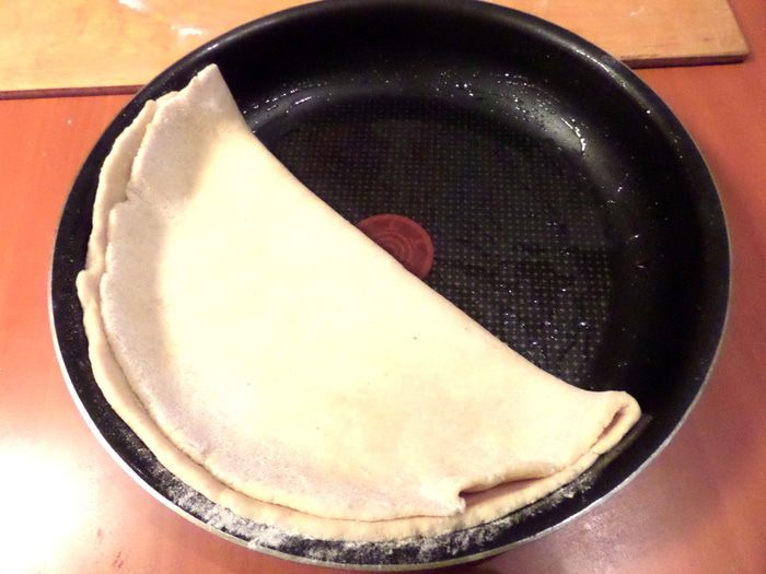 Перенесём пласт в смазанную маслом тефлоновую форму диаметром 22 см.