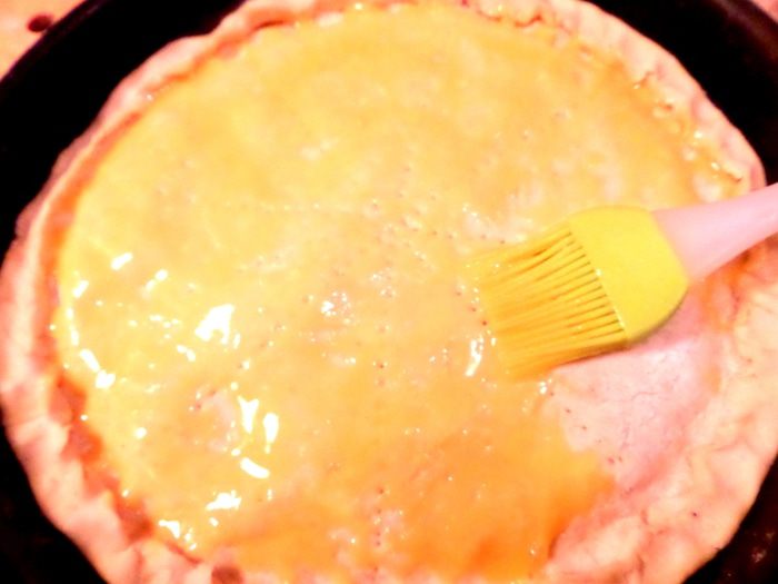 Желток отделить от белка и взбить вилкой или кисточкой.