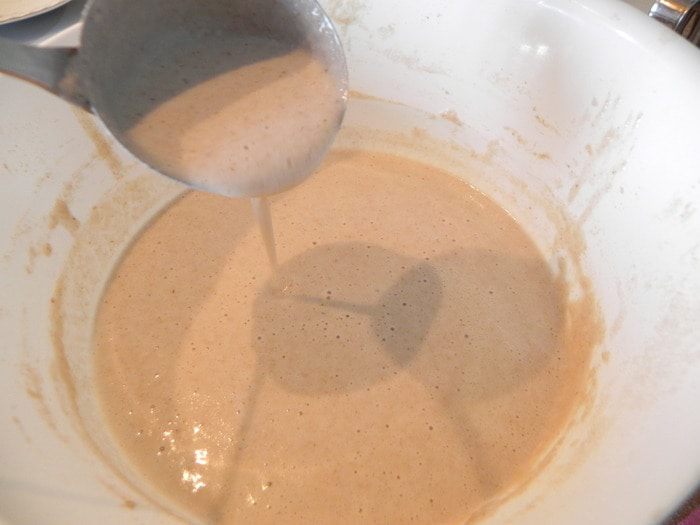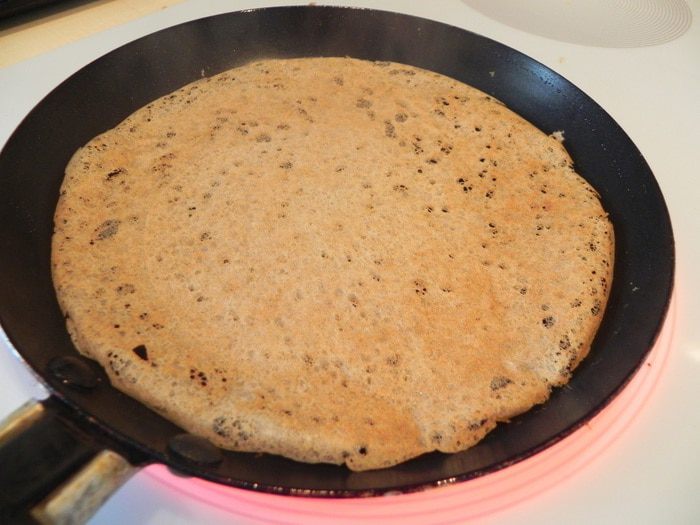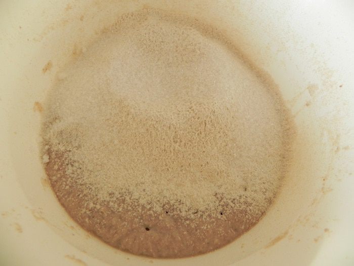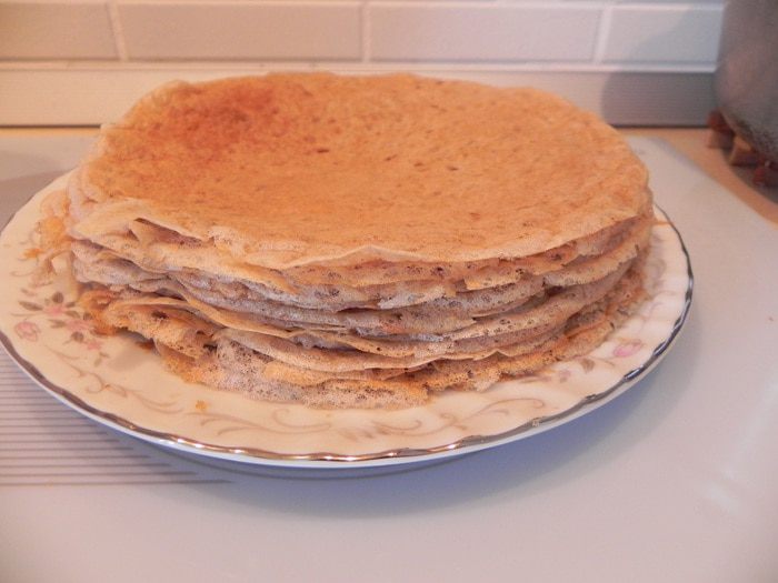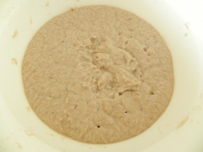 Дрожжи развести в небольшом количестве теплой воды. В миске смешайте гречневую муку с 1/2 стакана пшеничной муки, добавьте разведенные дрожжи, влейте 1/2 стакана воды (мне потребовалось чуть больше) и замесите вязкое тесто (чуть гуще чем на оладьи). Поставить в холод на несколько часов, а лучше на ночь.