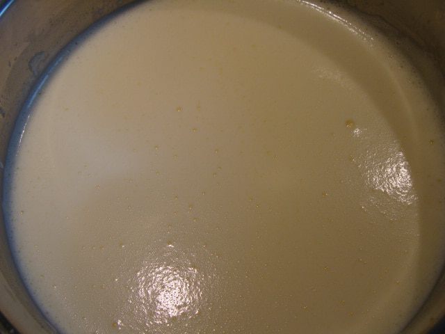 Я довела почти до кипения для профилактики болезней, передаваемых через яйца. Масса стала по консистенции как густая сметана.