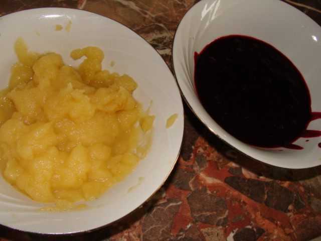 Вот такие пюре у нас получились. Туда я добавила по 1 столовой ложке сах. пудры, но можно этого не делать.