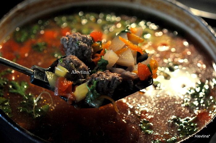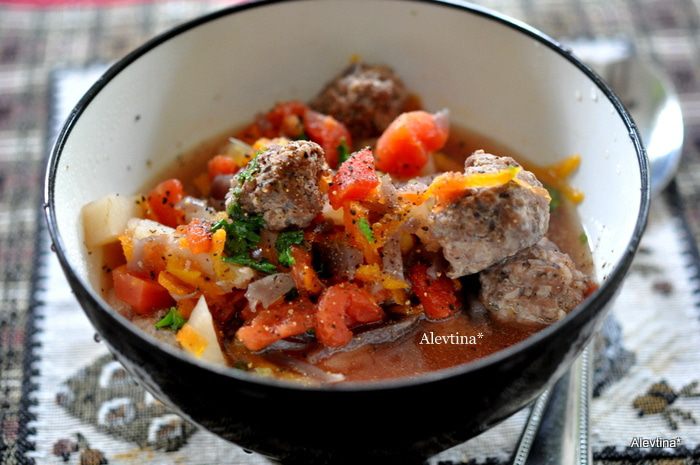 Приготовить фрикадельки, смешав перечисленные ингредиенты. Положим в морозильник на 1 час.
