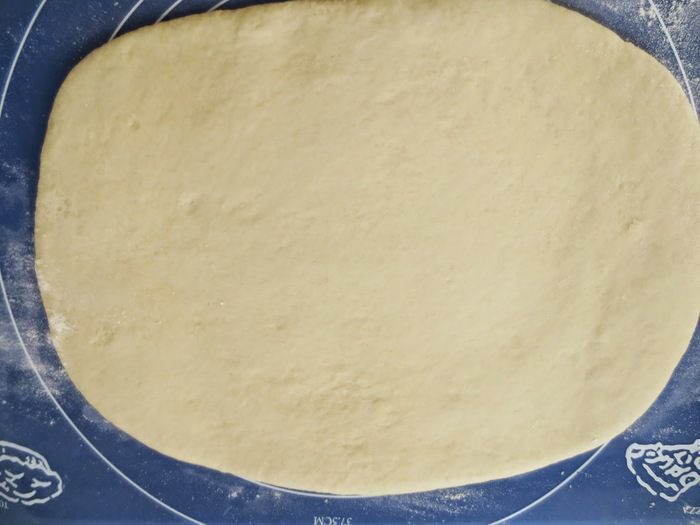 Добавить оставшуюся муку и замесить тесто. Накрыть тесто и оставить в холодильнике на 1 час отдохнуть.