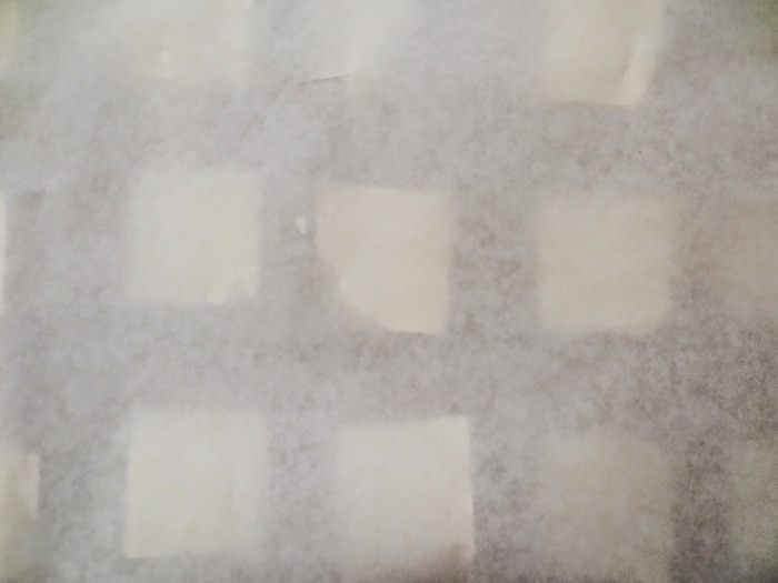 Снять верхний лист бумаги, перевернуть и положить на тесто, затем снять второй лист бумаги.