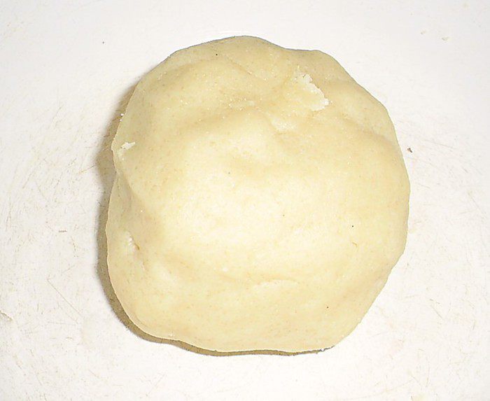 Из теплой воды и сахара приготовить сироп. Постепенно влить в миндальную муку с пудрой и тщательно размешать до однородности. Получаем гладкую пасту.