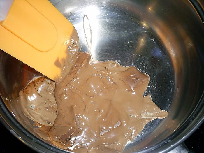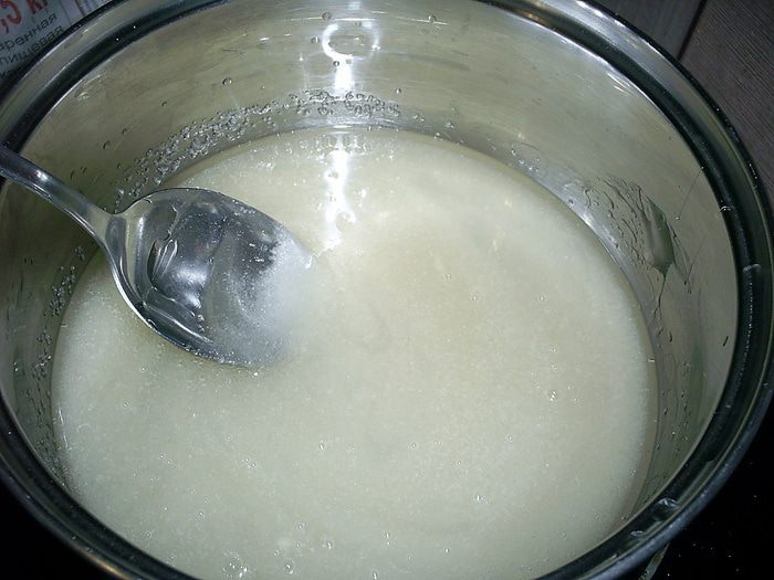 Даем глазури немного остыть (в идеале - до 70 градусов). И растворяем в ней набухший желатин. Теперь нам надо хорошенько остудить нашу глазурь, но следите, чтоб она не начала застывать прямо в ковшике.