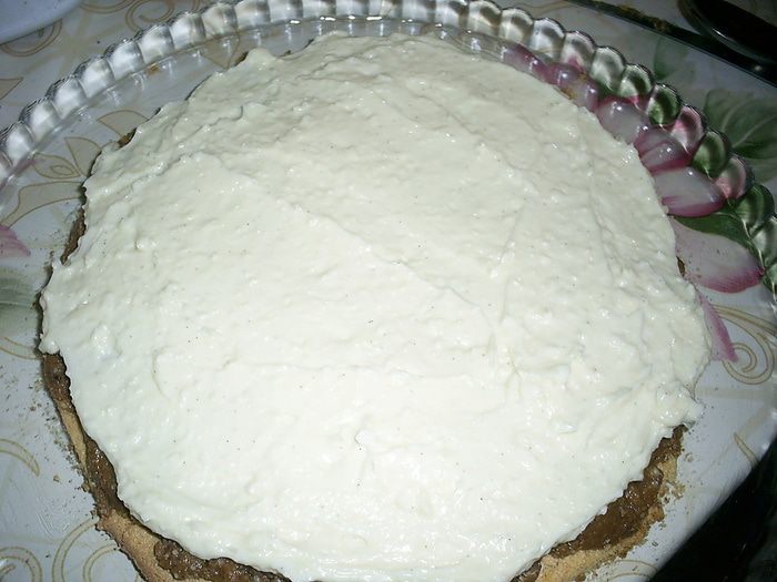 Оставшееся крем-брюлле распределяем по бисквиту. Теперь нашу заготовку помешаем в морозилку. К следующему этапу можно будет перейти, когда все слои немного схватятся.