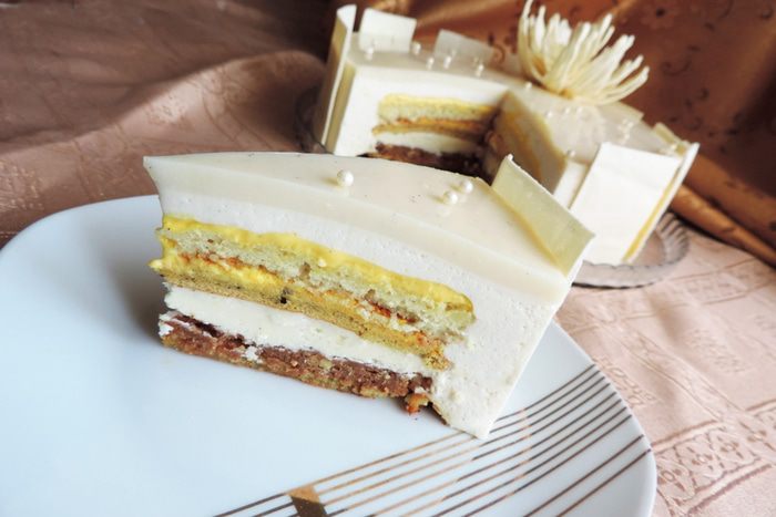 Об этом шикарном сложном многослойном торте я мечтала почти два года, с тех пор как увидела его в блоге Нины Тарасовой. Однако внимательное прочтение рецепта заставило меня отложить его в столь долгий ящик.![]()