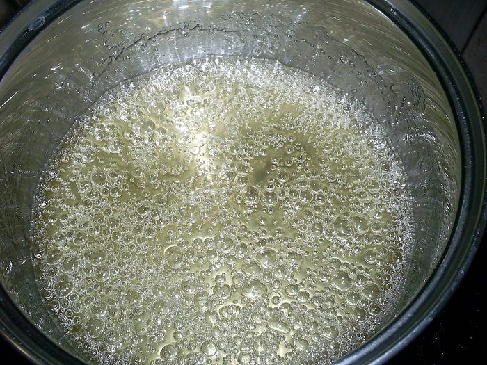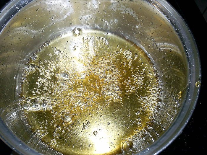 Нам надо уварить карамель до 150 градусов. Если варите без градусника - карамель должна приобрести лишь слегка золотистый оттенок.