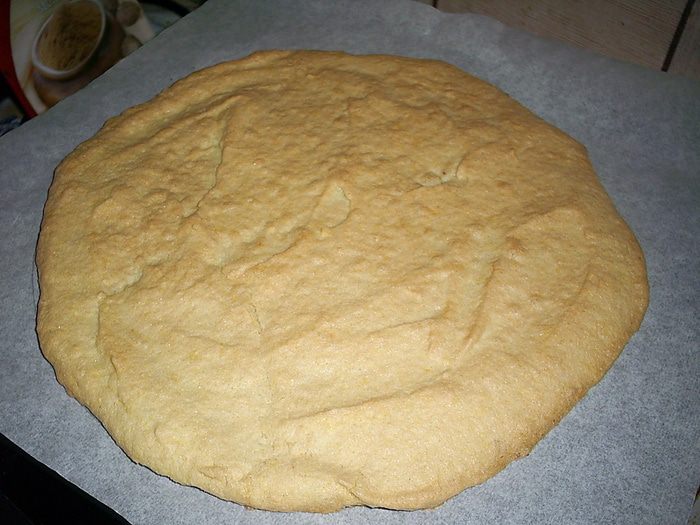 Равномерно распределяем его на пергаменте по кругу диаметром 20 см. При выпечке бисквит сначала поднимется, затем вернется к первоначальному объему. Это нормально!