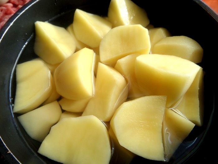 Картофель заранее почистить и держать в холодной воде.