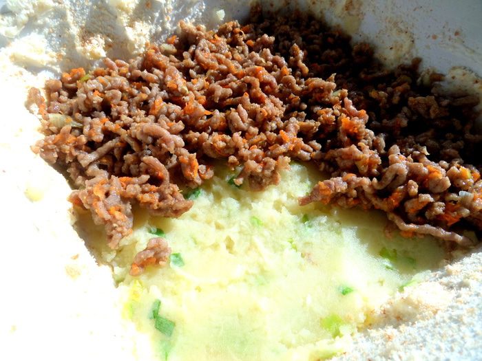 Выкладываем на пюре фарш...