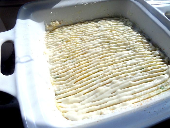 Замазываем верх сметаной или майонезом.