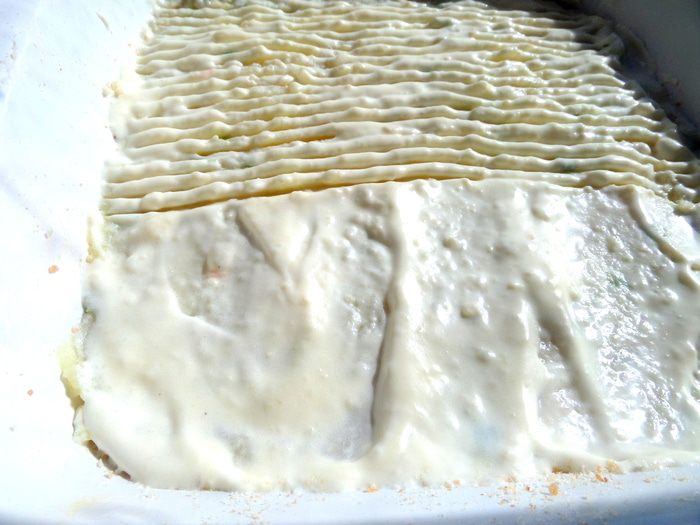 Укладываем половину пюре на дно.