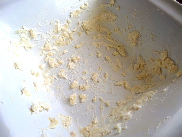 Берём мягкое масло и смешиваем его с чесночком прямо в форме!