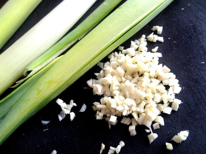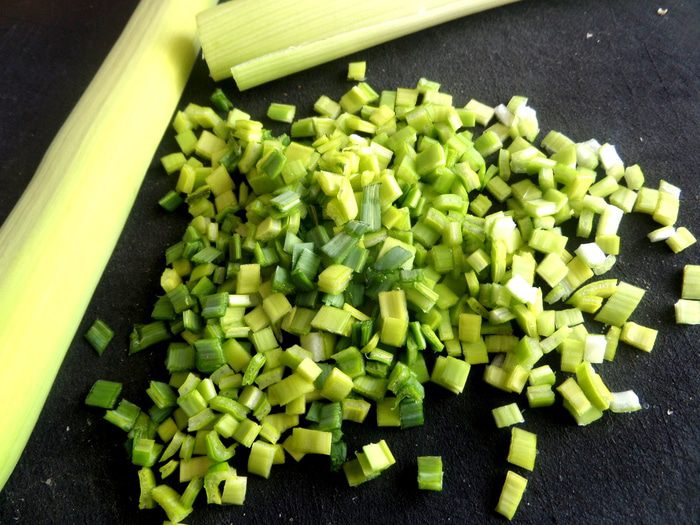 Зелень порея измельчить...