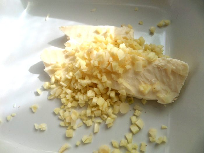 Теперь секрет, который я подсмотрела на одном видео от шеф-повара! Порубить чеснок...