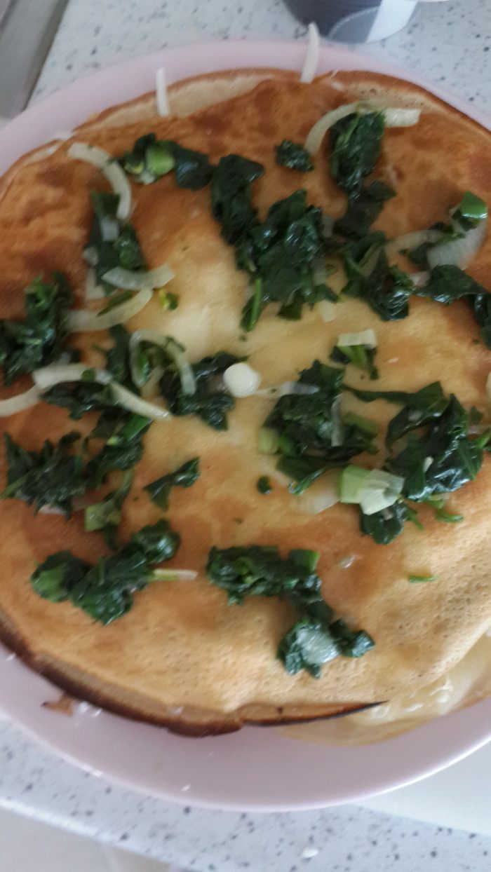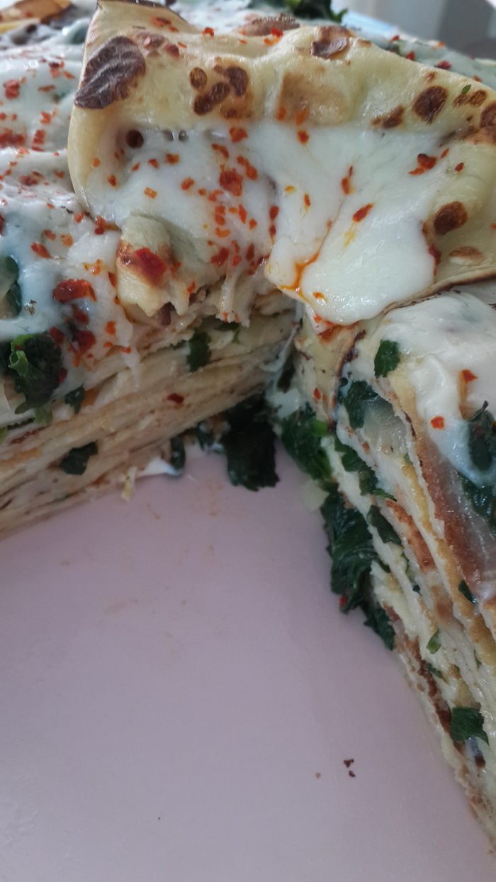 Я называю этот рецепт восточным, так как блины я делаю на айране и сочетание сыра и шпината я попробовала только в Турции. Кстати не только на завтрак можно этот торт готовить..... это еще и хорошая закуска.