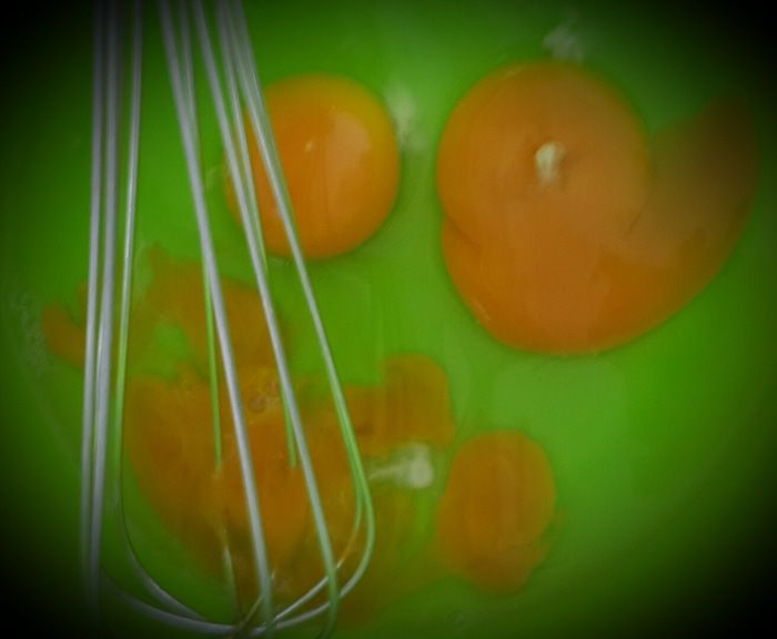 Разбить яйца в посуду для теста.