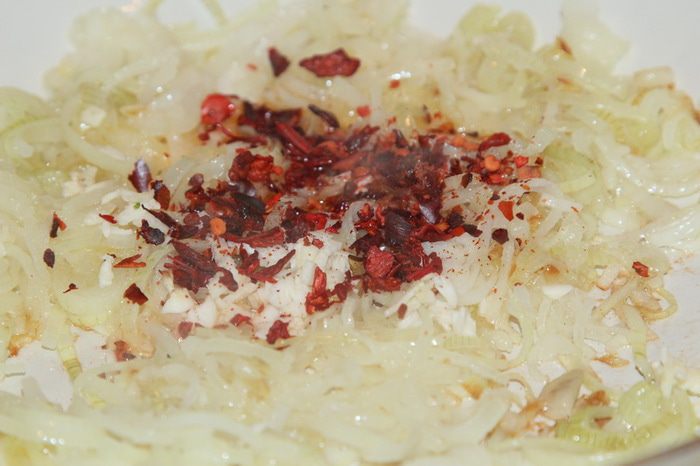 Нам понадобится две головки лука и два пучка шпината (получилось 150 грамм).