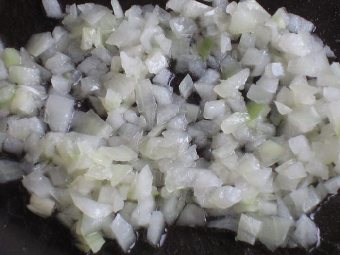 В сковороде разогреть оливковое масло и обжарить лук до мягкости.