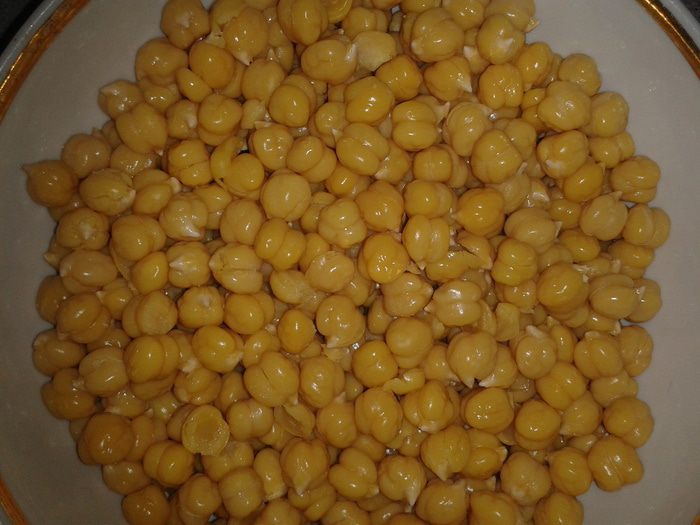 После того, как горох сварен, слить отвар в другую емкость, а сам нут залить холодной водой и очистить от шелухи, чтобы он получился гладким и блестящим.