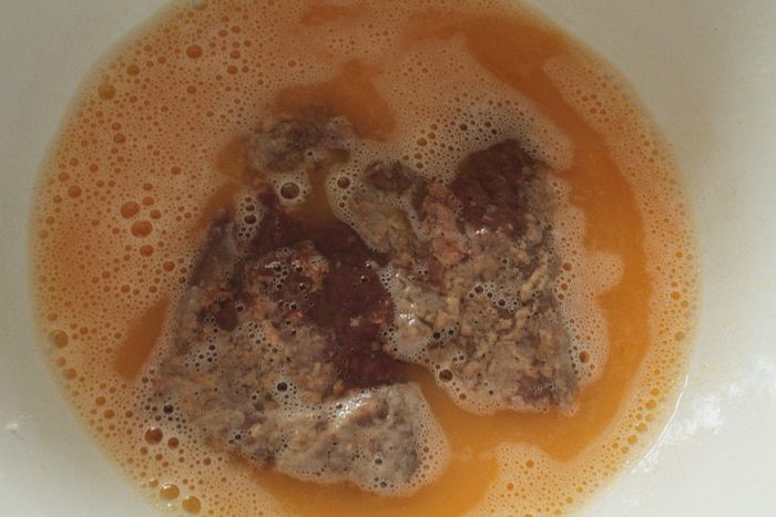 Взбить яйца с щепоткой соли и молотого перца. Каждую отбивную окунуть в приготовленную смесь.