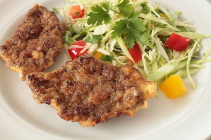 Нагреть сковороду с растительным маслом и обжарить отбивные до золотистого цвета на небольшом огне. Подавать с овощным салатом. Приятного вам аппетита!