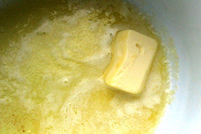 40 г сливочного масла из общего количества растопить в небольшой кастрюле на слабом огне.