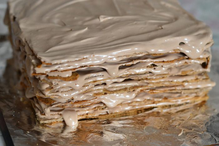 Для приготовления глазури соединить сахар и воду, поставить на огонь,дождаться,пока весь сахар раствориться,добавить шоколад и проварить до его полного растворения,можно по желанию добавить сливочное масло около 10 г. Глазурь остудить ,вылить и распределить по всему торту. Украсить по желанию. Я украсила крошкой и сделала узор из белого шоколада. Тортику дать настояться как минимум ночь.