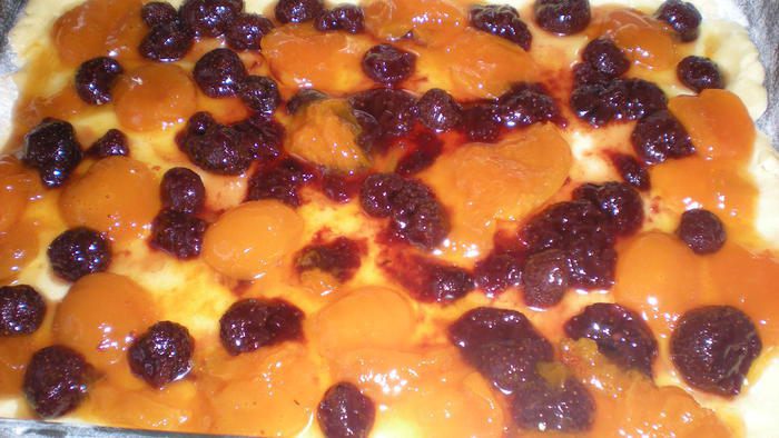 А вот и начинка: сегодня это кисленький абрикос и сладкая клубника.