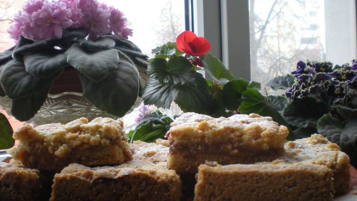 У нас в семье почему-то это печенье называется "Еврейским". Рецепт печенья к нам "приехал" в середине того века из Херсона. А в магазинах и кофейнях оно называется "Венским". А ещё я видела что-то похожее под названием "Полоски". Естественно, никакого сравнения с домашней выпечкой по вкусу. Пропорции инградиентов выверены временем. Сливочное масло совсем необязательно брать 82% жирности, достаточно и 72%. Муку смело сыпьте 2 стакана, а затем дозированно добавляйте ложками. Тесто получается маслянистым, очень нежным и легко поддаётся разным манипуляциям. начинки могут быть разными. Мы очень любим с ягодами из варенья (клубника и абрикос) - зимой, а с яблоками, клубникой, абрикосами или персиками (свежими, нарезанными небольшими кусочками) - летом. В рецепте указываю двойную норму. Если делать одну, то берём одно яйцо, а остальные составляющие делим попалам. Сода - 1 чайная ложка для двойной порции. Наверняка на сайте есть подобные варианты песочного теста, я не проверяла. Захотелось в эти замечательные весенние дни напомнить о своим любимом песочном печении.