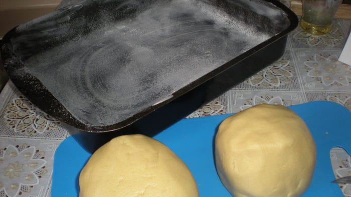 Форму обмазываем сливочным маслом и обсыпаем мукой.