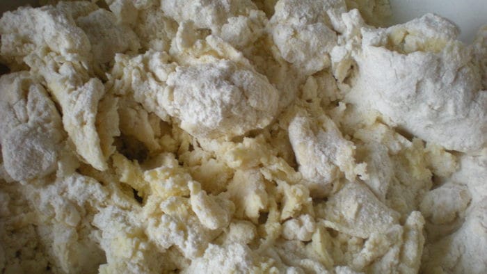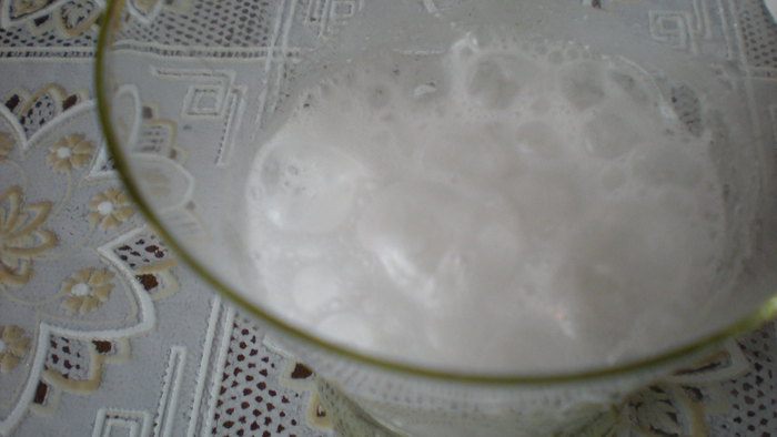 Положить 2 стакана муки и на небольших оборотах вмешать в тесто. Потом я с тестом работаю без миксера. Выкладываю на стол, и добавляя постепенно оставшуюся муку, вымешиваю тесто.
