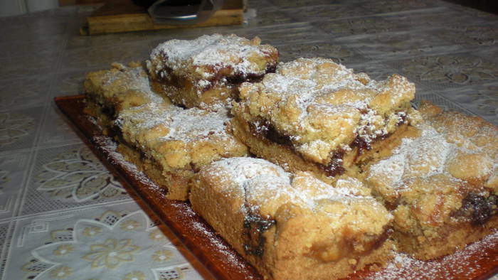 Когда немного остынет, можно разрезать на кусочки и по желанию посыпать сахарной пудрой.