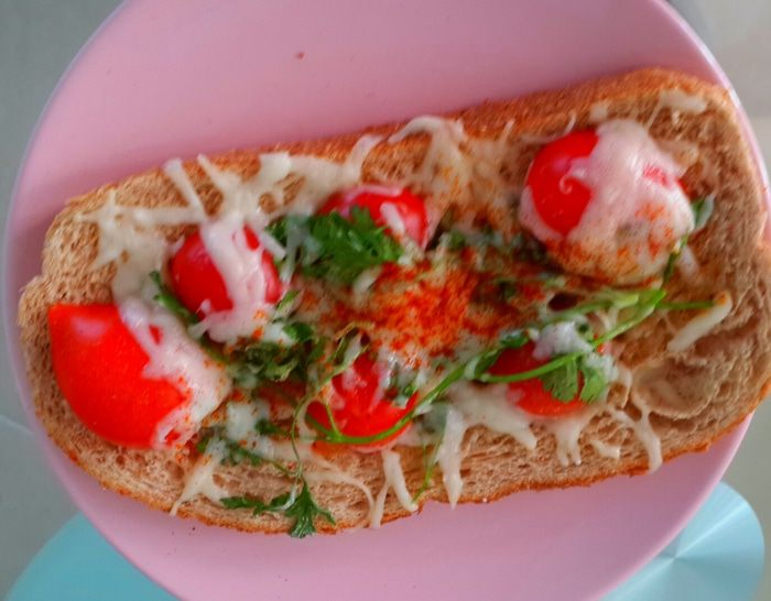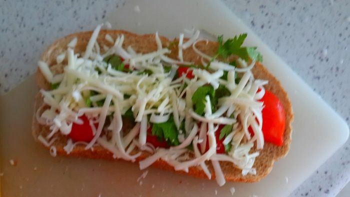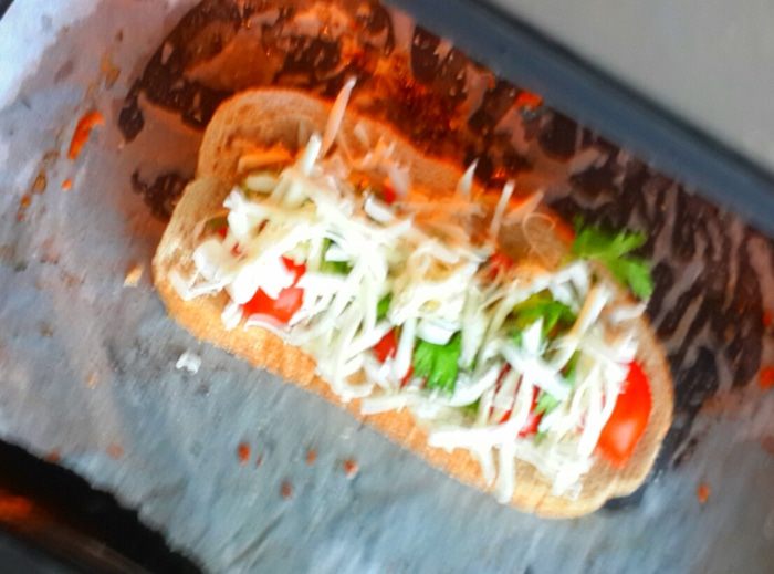 Легкий весенний бутерброд. Хлеб ваш любимый,сыр плавленный и специи..... мммм.... в духовке запечь...корочка хрустит, а в серединке мягкий хлебушек. Муж позвонил пару дней назад и скачал что через 10 мин заедет перекусить домой.... и я в торопях придумала этот бутерброд. И так муж поел суп и мое произведение