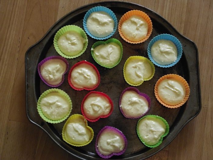 Разогреть духовку до 170 С°. В форму для капкейков положить бумажные формы — чашечки.