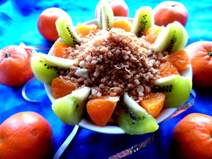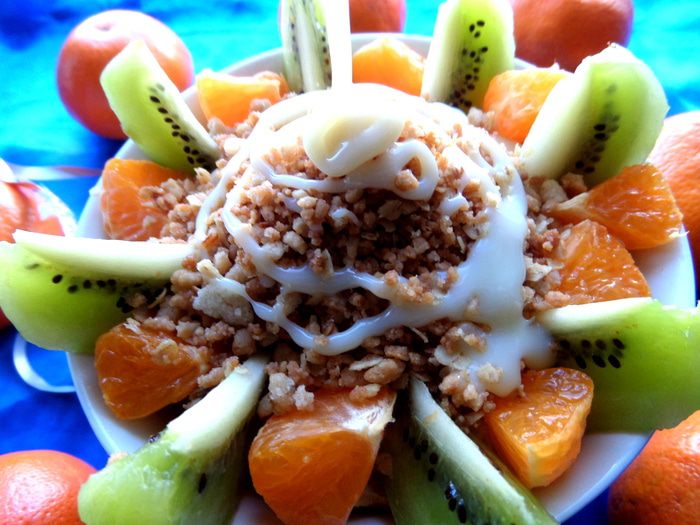 Угощаем близких свежим салатиком-десертиком с хрустинкой)))