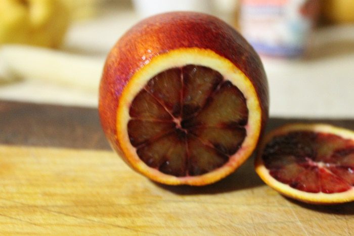 У меня был красный Марроканский апельсин. Чистим его от кожуры и пленок, добавляем в креманку.