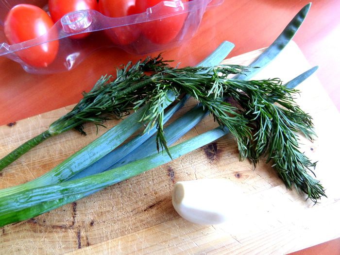 Зелень можно любую! Я решила лук в пюре, а укроп снаружи, но можно и наоборот))