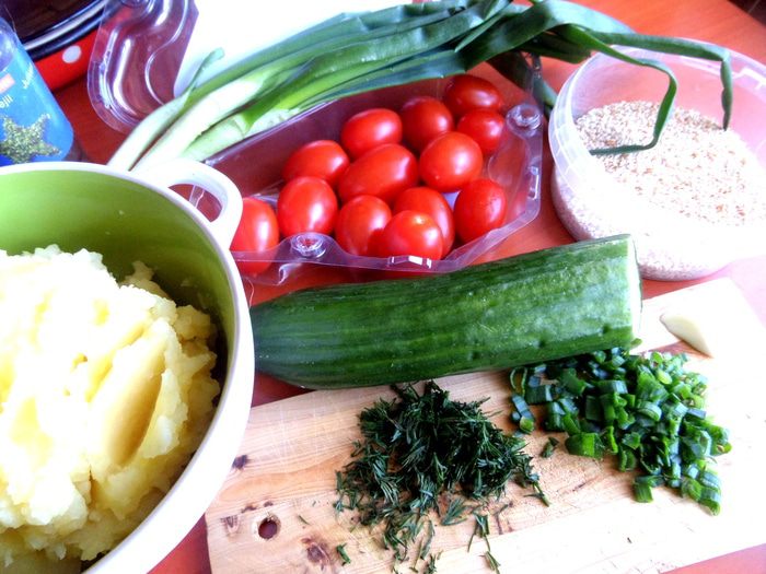 Пюре желательно заранее сварить. Особенно хорошо подойдёт оставшаяся порция от ужина!