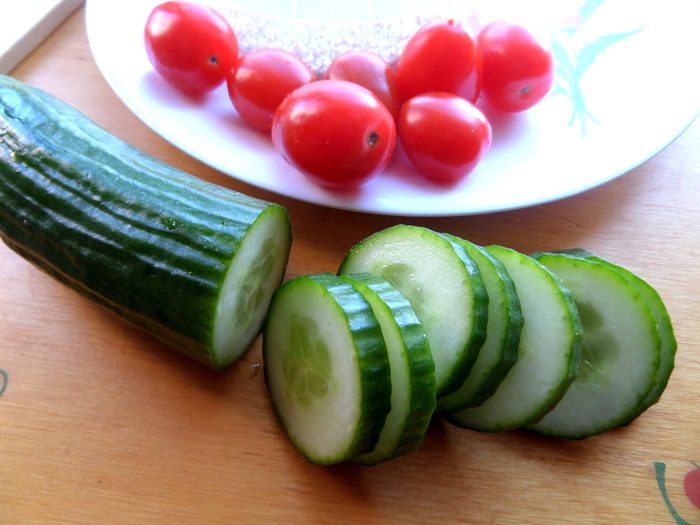 Готовим красивую подачу...Для этого огурец нарезать на толстенькие кружки.