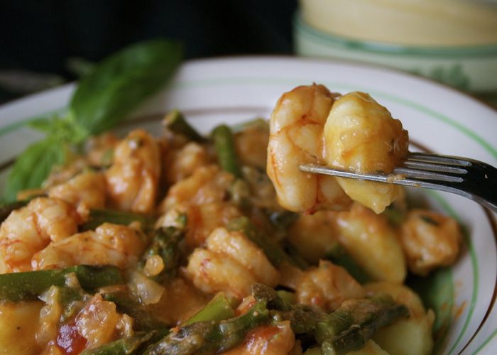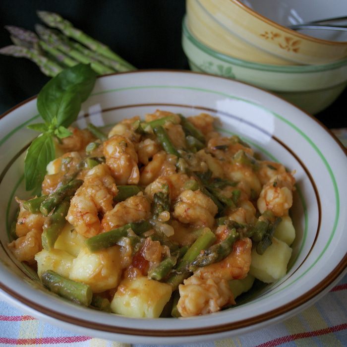 Предлагаю вашему вниманию картофельные ньокки с очень вкусным и нежным соусом из спаржи и креветок. Случайно наткнулась на рецепт этого блюда в одной кулинарной книге. Приготовила на ужин... И............сказать, что это вкусно, все равно что ничего не сказать!
