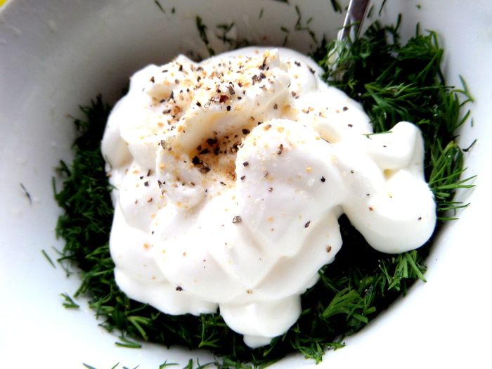 Прижимаем и промазываем сметаной с укропом.