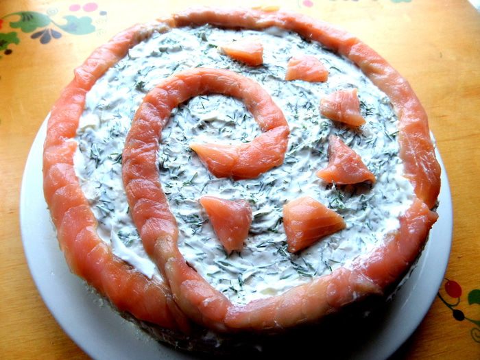 Вы ходите в кулинарную школу? А я периодически хожу...виртуально,на нашем сайте,когда меня слева в рецепте приглашают на что-нибудь интересное))) Так как я фанат лавашей,то хачапури из него я просто не могла пропустить))) Заочно зная,что получится объеденье,я решила преумножить это объеденье и приукрасить красной рыбкой! И в итоге получила замечательный закусочный тортик!!! Готовила вечером,а на утро уже пропитанный нарезала на кусочки...,с кофе просто превосходно! Или гостям...или в гости взять...и пусть угадывают,из чего начинка)))