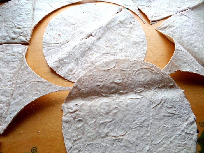 Разворачиваем лаваш и будем выкраивать круги для хачапури...