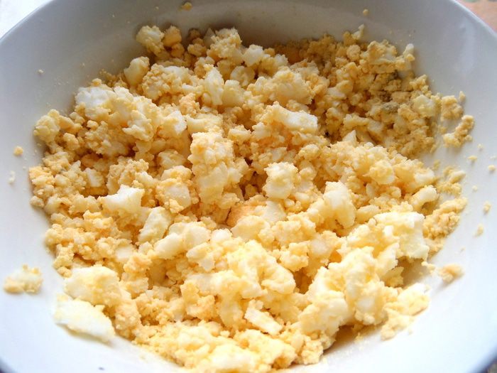 Яйца сварить,размять вилкой...