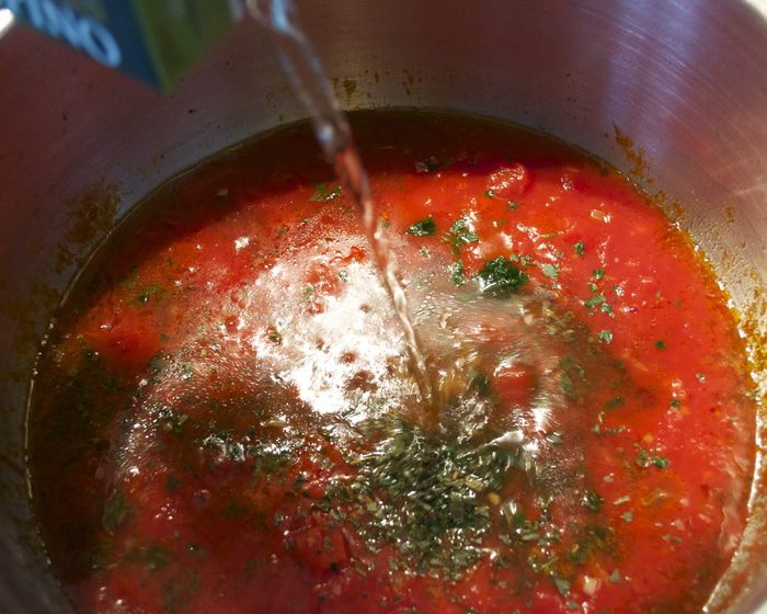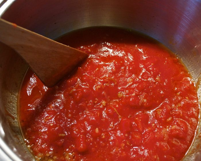 Добавить томаты. Можно положить свежие помидоры...