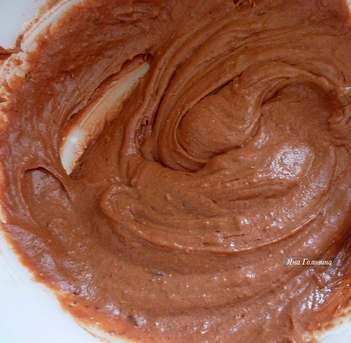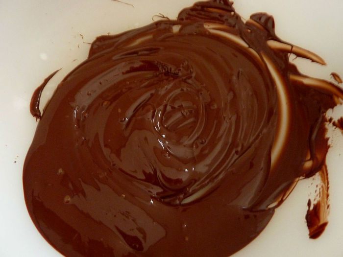 Добавить не очень горячий шоколад и очень хорошо размешать.