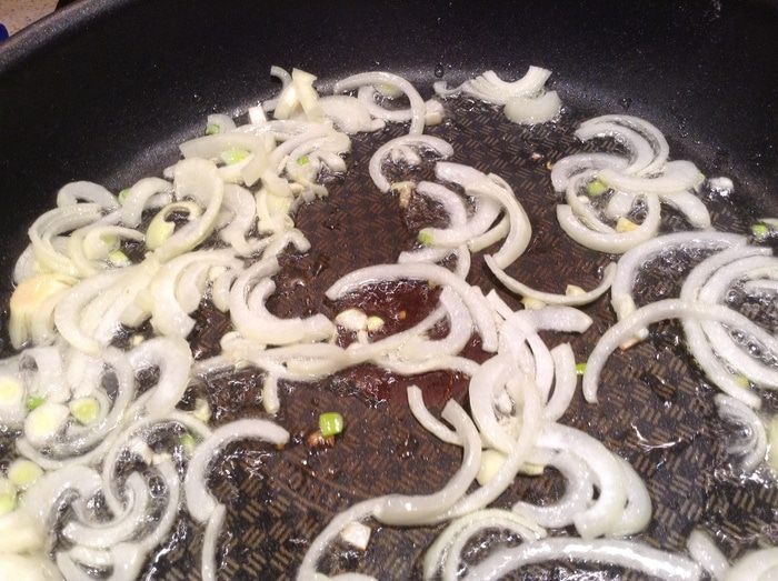 Обжарить лук.